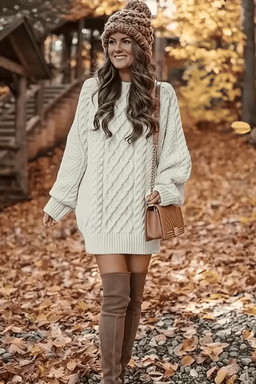 The Elegantiee Women's Jumper Dress is the epitome of modern sophistication: soft and comfortable.